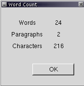 > > - word count dialog (Sam)