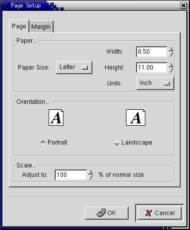 2) Page setup dialog, based on work in Gnumeric and by Daniel Thompson